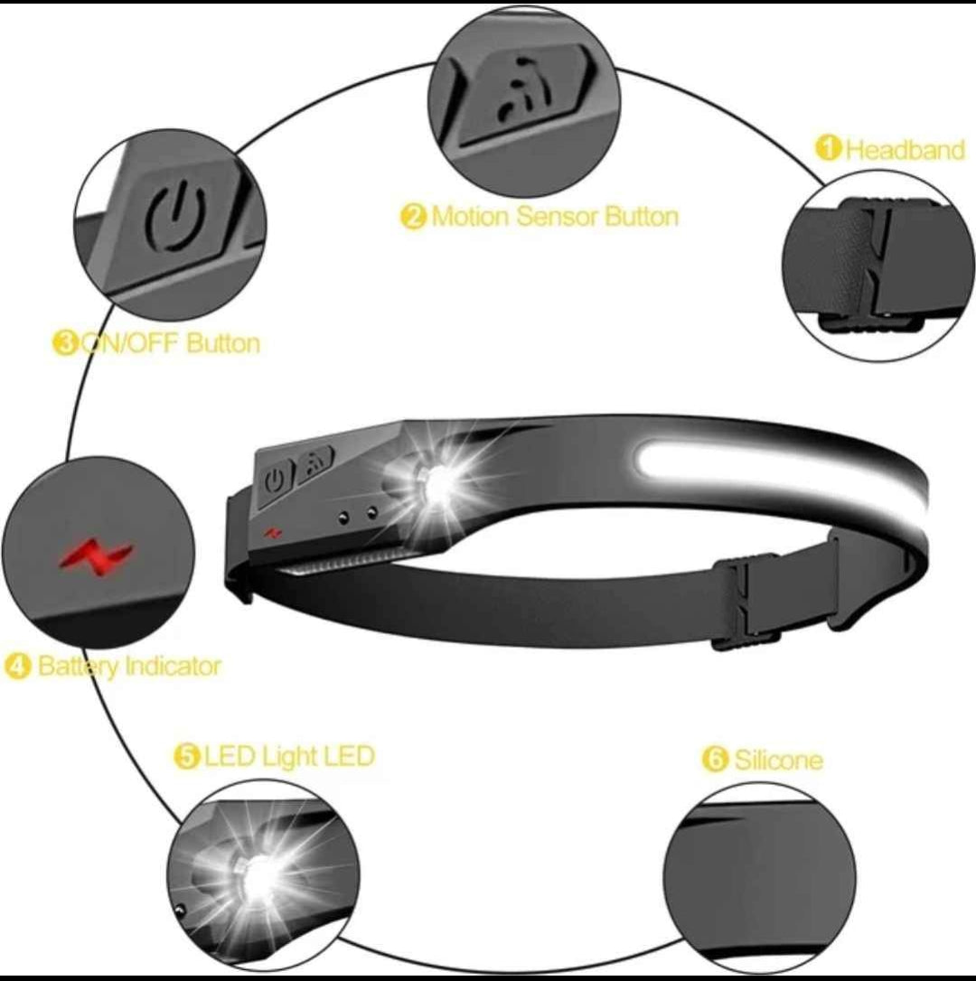 Características🛒🎁Haz amplio y foco de luz de 230: en comparación con el faro tradicional, esta nueva lámpara frontal proporciona una iluminación de haz ancho de 230, lo que te permite iluminar todas las áreas sin mover la cabeza, también puedes utilizar su foco para centrarte en áreas específicas.Modo de sensor de movimiento: la lámpara frontal tiene un sensor de movimiento de alta calidad. Incluso con guantes puedes encenderapagar la luz agitando tu mano delante del punto de recepción del sensor.6 modos de luz: el faro LED tiene 6 modos para elegir, luz COB alta, luz COB baja, XPE alto, XPE bajo, modo estroboscópico, sensor de movimiento, pulsa el botón de encendidoapagado para transformar el modo estroboscópico, luego la luz XPE y COB parpadearán al mismo tiempo.Diadema ligera y ajustable: el faro recargable es de solo 3.5 onzas, hecho de silicona suave y una diadema elástica ajustable, plegable sin comprometer el uso, ligero, tamaño pequeño, fácil de poner en tu bolsillo, buena opción para accesorios de camping.IPX4 resistente al agua y multiusos: el faro recargable es IPX4 impermeable y no tienes que preocuparte si llueve o nieva de repente. Ideal para entusiastas del aire libre como equipo de camping. Ya sea que estés de camping, explorando, senderismo, ciclismo, pesca, escalada, reparación y otras actividades al aire libre o interior, nuestros faros son tus grandes asistentes.