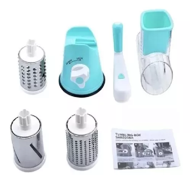 Molino Rayador Multiusos Picador De Verduras 3 En 1Descripción- Desmontable para facilitar la limpieza- Materiales: Acero inoxidable y plástico- Base con ventosa ultra fuerte para fijarlo en superficies lisas- Molino Rayador 3 En 1- Tambores intercambiables- Tambores en acero inoxidable- Material De la base ABS- Pieza de empuje- Sistema de succión sobre superficies planos para mejor manejo- Sistema 3 En 1 GARANTÍA ¿Tu producto tiene alguna novedad que debamos reportar?* Una vez recibas tu producto, cuentas con máximo 5 días para reportar a Soporte: piezas faltantes, rotas o cualquier novedad que presente el producto.*¿No era lo que esperabas?* Aplica Ley retracto Durante 5 días, contados a partir de la recepción del producto, para la devolución, ten en cuenta que debe estar en las condiciones que se recibió, con su empaque original, con las etiquetas, sellos de seguridad, y contar con todas sus partes y/o accesorios. Sin rayones ni manchas. Se recibirá únicamente en óptimas condiciones. Se anulará automáticamente el derecho a retracto si el producto fue usado.*¿Tu producto está presentando fallas?* Cuentas con 30 días de garantía por funcionamiento y/o daños del producto que no estén relacionados a su mal uso. Para hacer efectiva la devolución, el producto debe entregarse debidamente protegido cuidando el estado del empaque original, incluir todos los documentos y/o manuales (si aplica) y las partes completas